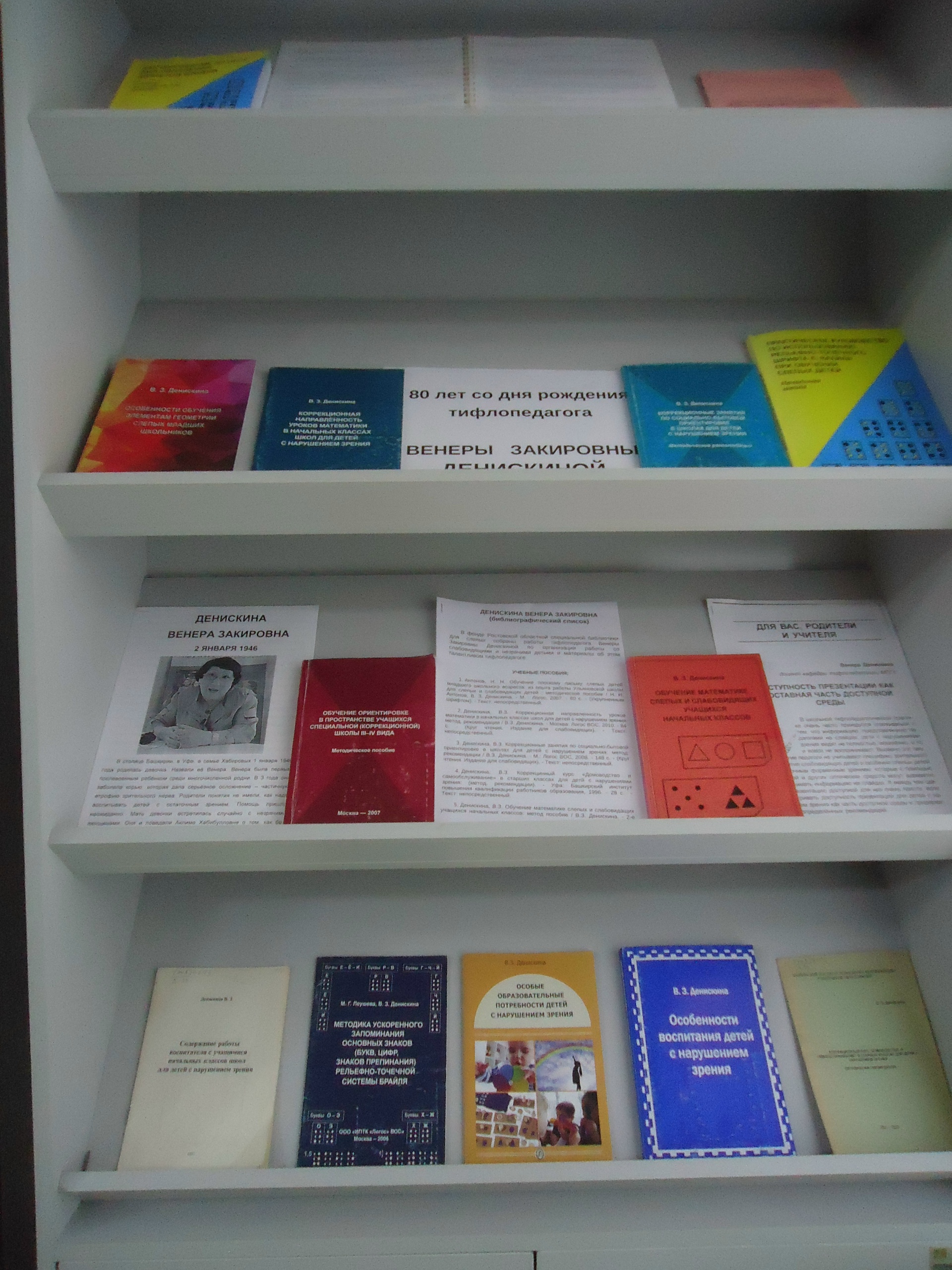 Ростовская областная специальная библиотека подготовила книжную выставку «80 лет со дня рождения тифлопедагога Венеры Закировны Денискиной» и библиографический список литературы, посвященный этой удивительной женщине.