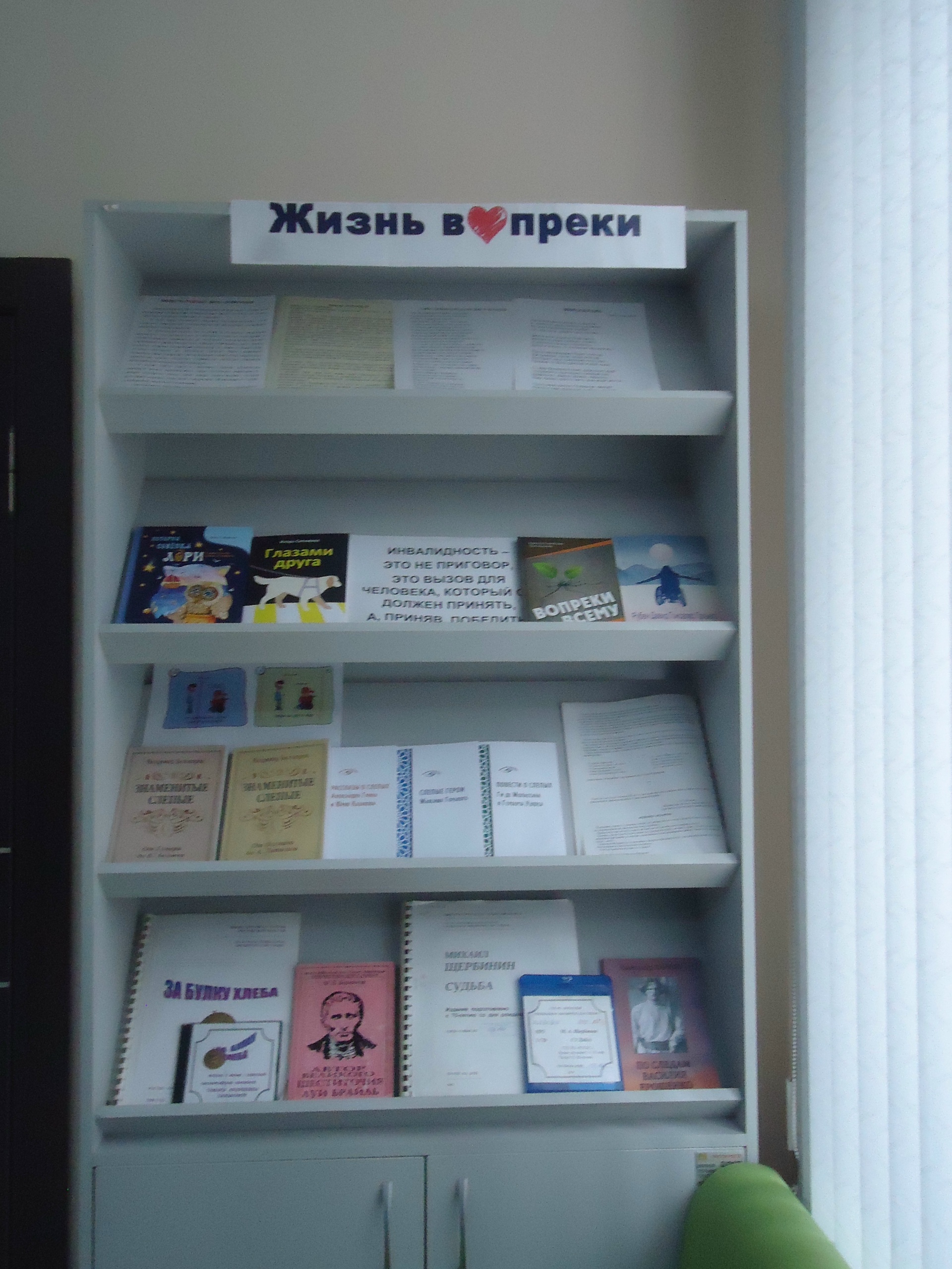 К Декаде инвалидов Ростовская областная специальная библиотека представляет книжную выставку «Вопреки всему». Она посвящена людям, которые вопреки ударам судьбы не сдаются и умеют радоваться жизни.