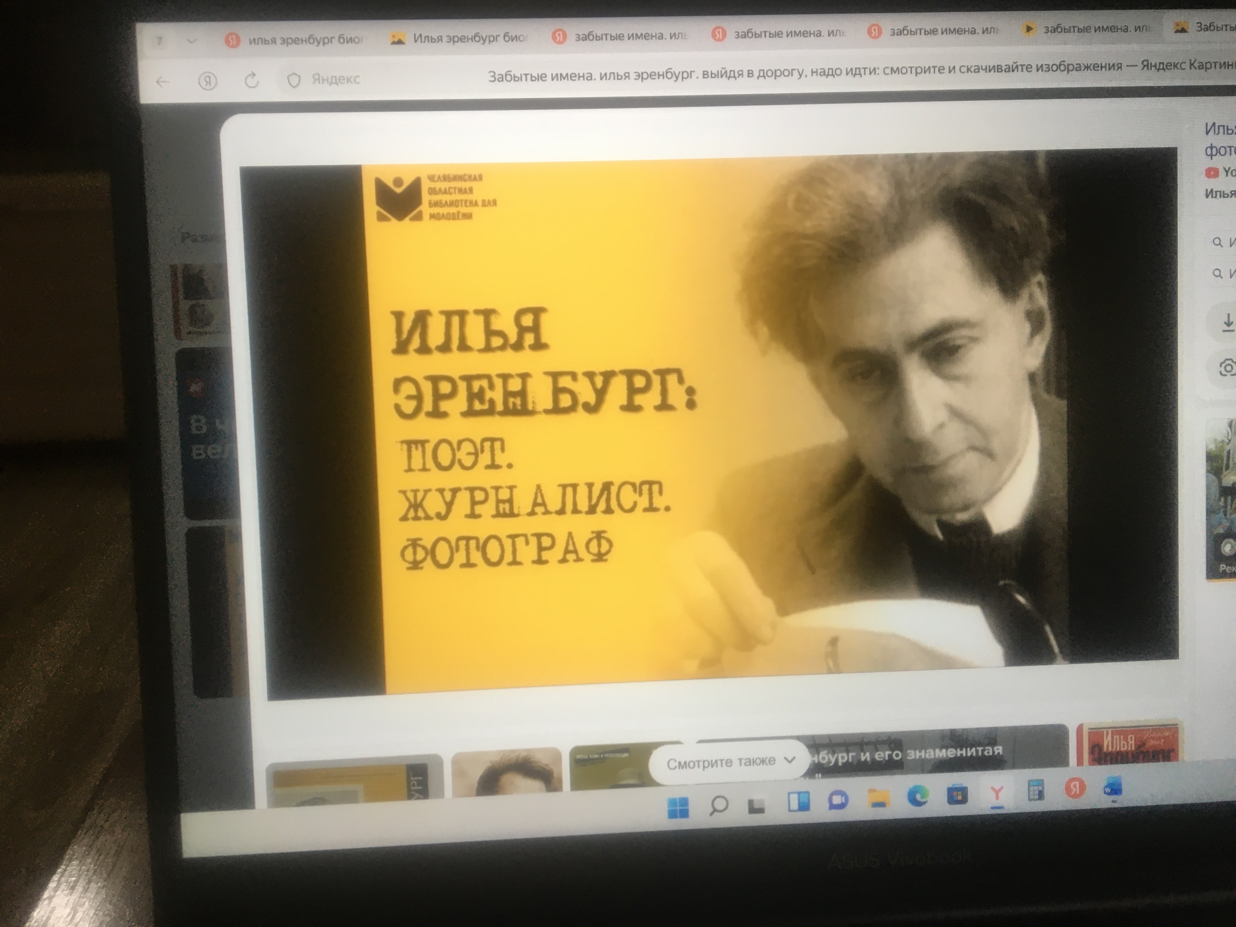 16 января 2026 года в новочеркасском пункте выдачи библиотеки для слепых состоялся литературный час «Выйдя в дорогу, надо идти…», посвященный 135 -летию со дня рождения прозаика, поэта, публициста, переводчика, военного корреспондента, одного из ярких представителей русской литературы ХХ столетия Ильи Григорьевича Эренбурга.
